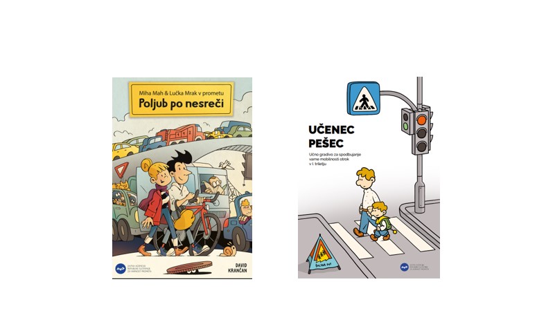 Učenec pešec: učno gradivo za spodbujanje varne mobilnosti otrok v 1. triletju je didaktični pripomoček za učitelje (med sabo ga lahko izmenjujejo ali ga imajo v šolski knjižnici). Gradivo vsebuje kratka pravila, predloge za aktivnosti, naloge za učence 1. triletja. Vsebine so namenjene spodbujanju varne mobilnosti otrok, osvajanju prometnih pravil in pojmov s področja prometa, razumevanju pomena vidnosti v prometu, razumevanju različnih prometnih situacij v različnih vremenskih razmerah, poznavanju varnejših poti v šolo. Učno gradivo je zaenkrat prosto dostopno na spletni strani AVP (https://www.avp-rs.si/preventiva/prometna-vzgoja/ucno-gradivo-ucenec-pesec/) ter stalno dostopno na Portalu SPV za registrirane uporabnike ( https://portalspv.avp-rs.si/user-panel?vzgojna-gradiva#user-content ) . Naloge za učence lahko učitelji za pedagoške potrebe natisnejo.