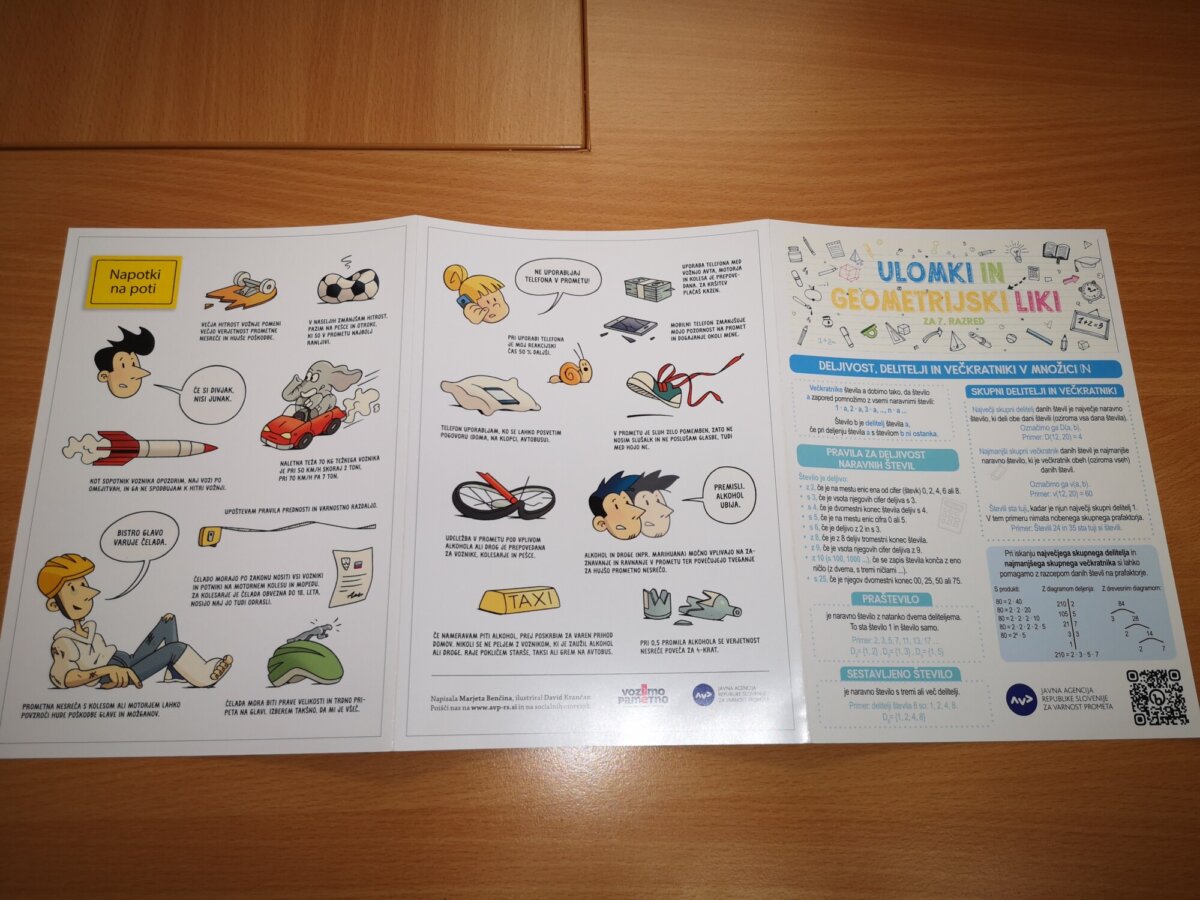 (Ljubljana, 9. oktober 2023) Javne agencije RS za varnost prometa je za vsi sedmošolce v državi priskrbela didaktične pripomočke z matematičnimi formulami in poučnimi sporočili, ki spodbujajo večjo varnost učencev v prometu.