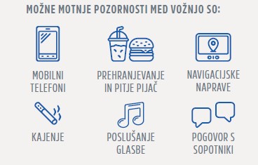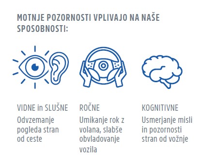 Raziskave kažejo, da, če smo nepozorni le 5 sekund pri hitrosti 60 km/h, v tem času prevozimo razdaljo več kot 83 metrov. Še večje tveganje pa je na avtocestah, kjer pri hitrosti 130 km/h v petih sekundah prevozimo več kot 180 metrov. Gre za podobno tveganje, kot da bi takšno razdaljo prevozil z zaprtimi očmi. Voznik vozi z bistveno zmanjšano pozornostjo in s tem ogroža sebe in vse druge udeležence prometa.