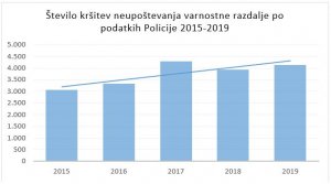 Na spoštovanje ustrezne varnostne razdalje vozniki vse prevečkrat pozabljajo, kar izkazuje tudi naraščajoč trend kršitev v obdobju 2015-2019. Policija je na področju kršitev neupoštevanja varnostne razdalje v letu 2015 zabeležila 3.054 kršitev, leta 2016 3.326 kršitev, v letu 2017 pa že 4.297 kršitev. Trend se je v letu 2018 nekoliko izboljšal, število kršitev je padlo na 3.943, a je leta 2019 znova poskočilo na kar 4.141 kršitev. Število po posameznem letu in trend v zadnjih petih letih prikazuje spodnji graf.